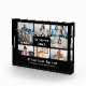 Bloque fotográfico de clase de año de graduación mostrando 8 fotos con una cita en blanco del guión casual de tipografía "la aventura empieza". +++++++ Personalízalo con tus fotos, nombre y año de graduación para crear un lindo regalo de sake para preservar los recuerdos de los años escolares.