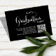 Este diseño presenta una invitación de graduación de la fiesta de códigos QR, con una plantilla moderna minimalista de caligrafía, con diseño de imagen senior de plantilla de foto, con tipografía en blanco y negro, un simple inserción de invitación, detalles de información de detalles, detalles de información de fiestas de grado, detalles de información de la información, estupendo para la secundaria o la universidad, estupendo para la tarjeta de inserción de invitación a la fiesta, con detalles de escaneo de código QR escaneado, con un mortero de cierre de gorra de cierre de de graduación