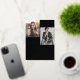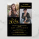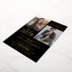 Invitaciones a fiestas de graduación conjuntas de Relieve metalizado real con un elegante fondo negro que se puede cambiar a cualquier color, fotos de los dos graduados y un elegante patrón de doble celebración de Relieve metalizado de oro que es fácil de personalizar. NOTA: el Relieve metalizado puede cambiarse a oro plateado o rosa.