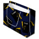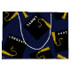 Bolso de regalo único para tu clase favorita de 25 grados con creativas tapas en negro y oro sobre fondo azul marino. Para personalizar el texto de edición para añadir el nombre del graduado y su año de clase superior.