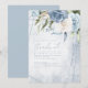 En esta invitación se utiliza un tipo de letra de firma manuscrita combinado con marcos geométricos, fondo brillante y flores exuberantes para establecer un tono cálido e íntimo para su celebración. La invitación que se muestra aquí, con su disposición floral de esquina en color azul polvoriento y crema a la moda, proporciona los detalles de su evento. Busque ID889 para ver todos los productos de este conjunto de bodas.