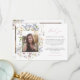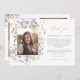 Una tarjeta de agradecimiento para la graduación de una flor silvestre de bonito que incluye gráficos florales de acuarela en tonos suaves azul, rosa, amarillo y verde y un tipo de letra moderno. Hay espacio para una foto en el frente y dos en el reverso y esta es la manera perfecta de agradecer a sus invitados por asistir a su fiesta de posgrado. Parar con cualquier cosa de la colección ELODIE para tener un aspecto cohesivo.