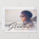 Celebra y honra a tu graduado con estilo con esta elegante y elegante invitación fotográfica. Con un elegante guión moderno de caligrafía que dice "Graduado" con un gradiente transparente blanco justo encima de la foto. Personaliza con tu propia foto, el nombre del graduado y el año de clase al frente. Añada los detalles de su fiesta a la parte posterior.