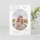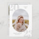 Marco fotográfico redondeado, invitación de graduación de clase superior e invitación. Números de año de graduación de fondo gris suave en blanco con líneas de plantilla para el año, nombre del graduado y escuela. La parte trasera de la tarjeta incluye 4 espacios de fotos adicionales con líneas de texto para los detalles de tu fiesta de apertura/graduación.