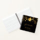 Clase de 2025 (o cualquier año). Para una moderna y moderna celebración de graduación. Un fondo negro de moda con falsas estrellas doradas. El texto: El graduado está escrito con un guión de gran tamaño con letras a mano, letras doradas. Personalice y agregue un nombre y un año. Decorada con una moderna y abstracta tapa de imitación de oro, con tapón de acero. Para planear a su fiesta, notas o como libro de invitados.