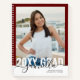 Fiesta de Graduación Personalizada o Libro de Invitados de la Casa Abierta con Nombre de Script Moderno y Clase de Año Sobrepuesto en una Foto Senior en la Portada frontal - mostrada en rojo burdeos, pero puede cambiar el color del borde de fondo para que coincida con los colores de la escuela o el esquema de color del fiesta de grado.