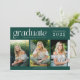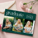 Celebra su graduación de secundaria con esta tarjeta de invitación de graduación moderna de tres fotos de color verde oscuro. Personalizar con tres fotos principales, nombre y el nombre de su escuela. Esta clase de 2025 de tarjeta de invitación de graduación se revierte a coordinar verde en la parte trasera y es perfecta para la graduación de la secundaria para un hombre o chica.