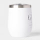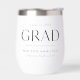Moderno vaso de vino de graduación con "Grad" con letras negras modernas. Personalice el vaso personalizado con el nombre del graduado, la escuela y el año de graduación. Este vaso de vino personalizado es el regalo perfecto para el(los) graduado(s) especial(s) en su vida y hace de una excelente fiesta de graduación!