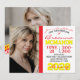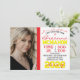 Invitación a graduación moderna roja y amarilla - 2 foto en blanco repetidor año de clase + imagen de vuelta