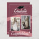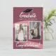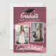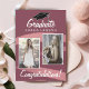 Graduado de color de agua rojo felicitaciones a 2 tarjeta de fotos. Bandas de color rosa a la moda sobre un fondo rojo oscuro. Personalice con 2 fotos y el nombre del graduado en la parte delantera y el mensaje en la parte trasera de la tarjeta o borre.