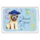 Envía gracias por tu regalo de graduación con este diseño que incluye a un lindo graduado de Soft Coated Wheaten Terrier vestido con un mortero en medio de una ráfaga de confetti.