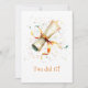 A ribbon and scroll with confetti and simple text on front and back.