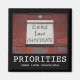 Las tortas adoran el graffiti de chocolate en una pared de ladrillo blanco y rojo. ¡Las prioridades son el amor por el pastel y el chocolate! Imán cuadrado de estilo poster motivacional.