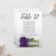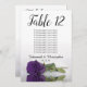 Estas hermosas tarjetas numerales facilitarán a los clientes la posibilidad de encontrar sus asientos en la recepción de su boda. Presentan un diseño sencillo pero elegante con letras caligráficas y un único rosa de color púrpura real profundo de tallo largo sobre su lado reflejando en el agua. La tarjeta incluye una tabla de asientos con 10 nombres. También hay espacio para los nombres de la pareja y la fecha de boda. Esta tarjeta está disponible en una variedad de tamaños y es más grande que nuestras tarjetas de número de tabla estándar.