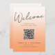 Este moderno y minimalista cartel de bienvenida boda incluye un elegante guión. El signo incluye una tabla de asientos digital con un código QR. El diseño juega con la sencillez de un diseño de tipografía en blanco y negro, añadiendo sólo un toque de color de melocotón con un gradiente naranja de melocotón. Es la elección perfecta para las parejas que aprecian la elegancia limpia y moderna. Para cualquier necesidad de diseño especial, no dude en ponerse en contacto directamente con el diseñador enviando un correo electrónico a choosehappystudio@yahoo.com