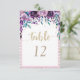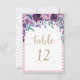 Números de mesa de boda de acuarela floral púrpura con champán dorado y confeti de rayas con fuente de pincel de moda. ¡Consulte mi tienda para ver todo el conjunto de boda para este diseño!