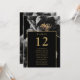 Estos elegantes números de mesa de boda florales negros y dorados pueden ser personalizados con los nombres de sus invitados en tipografía moderna. Diseñado por Thisisnotme©