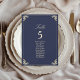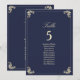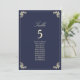 Elegante gráfico de asientos de boda azul barroco y dorado con florituras vintage ornamentadas, tipografía sofisticada y un diseño formal para guiar a los invitados a sus mesas. Perfecto para bodas de lujo, este gráfico de asientos es totalmente personalizable con nombres de invitados, asignaciones de mesa y detalles de su boda. Un diseño clásico y elegante que coincide con todo el conjunto de boda azul barroco, agregando refinamiento a la decoración de su recepción.