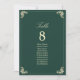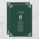 Elegante gráfico de asientos verde esmeralda y boda dorado con floridos barrocos ornamentales, tipografía refinada y un diseño atemporal para guiar a los huéspedes hacia sus mesas. Perfecto para recepciones de lujo, esta tabla de asientos está totalmente personalizable con nombres de invitados, asignaciones de mesas y detalles de su boda. Una sofisticada pieza de decoración que se coordina con la suite boda barroca verde esmeralda.