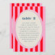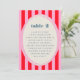 Esta vibrante y lúdica tarjeta gráfica de número de mesa boda cuenta con una ráfaga de color. Moda y divertidos tipos de letra emparejados con un alegre fondo de rayas rosadas y rojas hacen de esto una alegría para añadir a su día de bodas. El diseño se duplica en el reverso. Par con la colección de invitación a bodas Blooming Joy para bodas de primavera y verano. Combina todas las opciones de diseño del número de la tabla con las tarjetas de la gráfica de asientos para que la pantalla sea fácil de encontrar.
