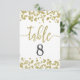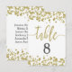 Gráfico de asientos y número de mesa de boda con confeti blanco y dorado - con fondo editable de color. ¡Con fuente de escritura a mano de moda! ~ ¡Consulta mi tienda para ver toda la suite de boda para este diseño!