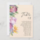 Este gráfico de números de tabla de melocotón floral tropical colorido es perfecto para su destino boho moderno, verde, violeta, boda de melocotón. El diseño cuenta con un elegante ramo de vegetación acuática clásica y flores que pueden incluir eucalipto verde salado, protea malva y roja, hibiscos rosa rubor, ave paradisíaca naranja y azul, y hojas de palmera verde oscuro. El diseño es ideal para un boda de viajes sencillo, creativo y único para primavera, verano, otoño o invierno. Encontrará otro papel de boda que coincida o coordine el resto de la colección.