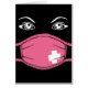 Estas camisetas y otros artículos están adornados con un gráfico estilizado de una cara con una máscara médica rosa.