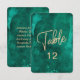 Gráfico de número de mesa para boda de otoño o invierno con letras doradas y acuarela en verde esmeralda con fuente de letra manuscrita de moda. ¡Consulta mi tienda para ver toda la colección de bodas con este diseño!