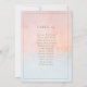 Este gráfico de las mesas de las acuarelas del atardecer de verano es perfecto para su boda de boho de playa tropical. Diseñado con coral minimalista de melocotón naranja y una polvorienta acuarela azul, acompañado de una sencilla tipografía rústica de arena dorada. Seguro que va a coincidir con tus modernas vibraciones de bodas bohemias de la costa.