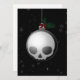 Este diseño festivo gótico tiene el ilustracion de un adorno navideño de bola de vidrio con un cráneo.