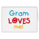 Gram Me Ama camisetas, tarjetas, pegatinas, bolsas de pantalones y mucho más con colorido rojo, amarillo y azul texto y diseño cardíaco. ¡Este Gram me ama ropa y artículos de regalo hará sonreír graso!