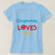 Grammie me ama camisetas, tarjetas, pegatinas, bolsas de trajes para el cuerpo, y más con colorido rojo, amarillo y azul texto y diseño del corazón. ¡Esta Grammie me ama ropa y artículos de regalo harán sonreír a la gramínea!