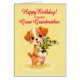 Una linda tarjeta de cumpleaños para una bisabuela. Un cachorro adorable sosteniendo un ramo de flores y diciendo 'Feliz cumpleaños'. Celebra un cumpleaños con esta irresistible carta mostrando a un dulce cachorro sosteniendo un ramo de flores de margarita, perfecto para derretir corazones.