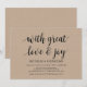Con gran amor y alegría, tarjetas de invitación para recepción de boda íntima. Esta tarjeta de invitación con tema de boda íntima y kraft rústico es perfecta para la recepción de su boda y la fiesta de celebración posterior a la boda. Agregue sus datos en fuente / letra negra coincidente.
