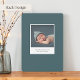 Un diseño de anuncio de nacimiento dulce y elegante con una foto horizontal o paisajística de sangría completa con "bienvenida" colocada en letras de bloques retro a lo largo de la parte inferior. El nombre y las estadísticas de nacimiento de su bebé aparecen debajo. Añade una foto adicional al dorso, junto con un mensaje personal.
