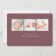 Un diseño de anuncio de nacimiento dulce y elegante con una foto horizontal o paisajista con "bienvenida" colocada en letras de bloques retro. El nombre y las estadísticas de nacimiento de su bebé aparecen bajo blanco. Añade tres fotos cuadradas adicionales a la parte posterior, junto con un mensaje personal.