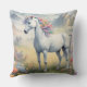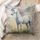 Una almohada más grande que muestra una imagen de ensueño de un unicornio blanco con una forma de arco iris parado en un campo de flores. En el fondo se encuentran las majestuosas montañas. El regalo perfecto para dar a los amantes de los unicornios mágicos y místicos. Contiene contenido generativo.