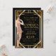 Invitación de cumpleaños de arte deco en negro y oro de los años 20. Consulte nuestras tarjetas de recepción y respuesta coincidentes.