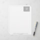 Coordina con el Gran Monograma Inicial sobre la plantilla de tarjetas de visita de línea gris a las 12.00 horas. Su inicial se basa en una línea de acento y luego está rodeado para convertirse en un logotipo único para su negocio o marca personal. © 1201AM CREATIVE