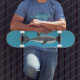 Gran monopatín del tiburón blanco, diseñado por Carolyn McFann del estudio de ronroneo de dos gatos.