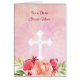 Desee a su gran sobrina una Feliz Pascua con esta hermosa acuarela de fondo floral. Una cruz se centra en los rayos blancos. Envíale una bendición religiosa a Pascua.