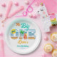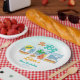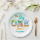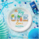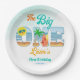La gran playa de surf Big One en el océano de verano tropical fiesta de cumpleaños monograma personalizado plantilla de placas impresas de papel. Bonita decoración de mesa personalizada para los cumpleaños de la playa de verano.