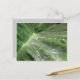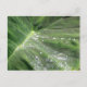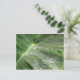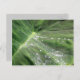 Una gran hoja verde con lluvia fresca perdura en los pliegues. Imagen capturada en Victoria, B.C. Postcard apropiada para enviar una simple nota a cualquiera.