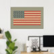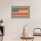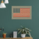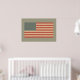 Los tonos rojos, azules y crema apagados le dan a este arte de tela de la Bandera Americana un ambiente rústico y vintage. El diseño es de arte original.