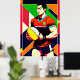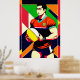 Gran Poster de arte de rugby japonés. Arte original de rugby de Roger Smith. Uno para el muro de los seguidores de rugby. 29,00" x 43,50". Impreso en papel poster sin ácido de 7,9 puntos y 53 libras. Calidad de la galería Impresión Giclee. Acabado brillante semi-brillante. Las tintas basadas en pigmentos garantizan la impresión de alta resolución en todo el espectro de colores