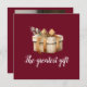 Estos anuncios de nacimiento son perfectos para el invierno y los bebés Navidades. Ellos leen "el regalo más grande" en un tipo de letra de guión con una acuarela clásica presente gráfico. Añadir una foto al fondo.