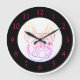 Te encantará este colorido reloj de Bulldog francés. Reloj divertido con un dibujo de un Bulldog francés en tonos morado, rosa y neón naranja. Fondo blanco con un anillo negro alrededor del exterior. Los números de neón rosado están en el anillo negro. Reloj de arte animal en Guay Frenchie!