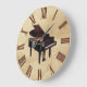 Las vistas de un Gran Piano sobre el fondo de un pergamino son de buen gusto para los amantes de la música. Clásica y elegante como diseño de reloj de pared para cualquiera, desde profesores de música o sus alumnos, en el aula o en cualquier club nocturno o estudio de grabación de música. NB: Este diseño de reloj está disponible con o sin los números de hora.