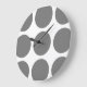 Reloj de pared de puntos de Big Polka, lindo y de moda. Este diseño presenta grandes puntas de polka circular en gris y blanco. Se puede añadir texto a este diseño para darle un toque personal.