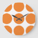 Reloj de pared de puntos de Big Polka, lindo y de moda. Este diseño presenta grandes puntos de polka circular en naranja y blanco. Se puede añadir texto a este diseño para darle un toque personal.